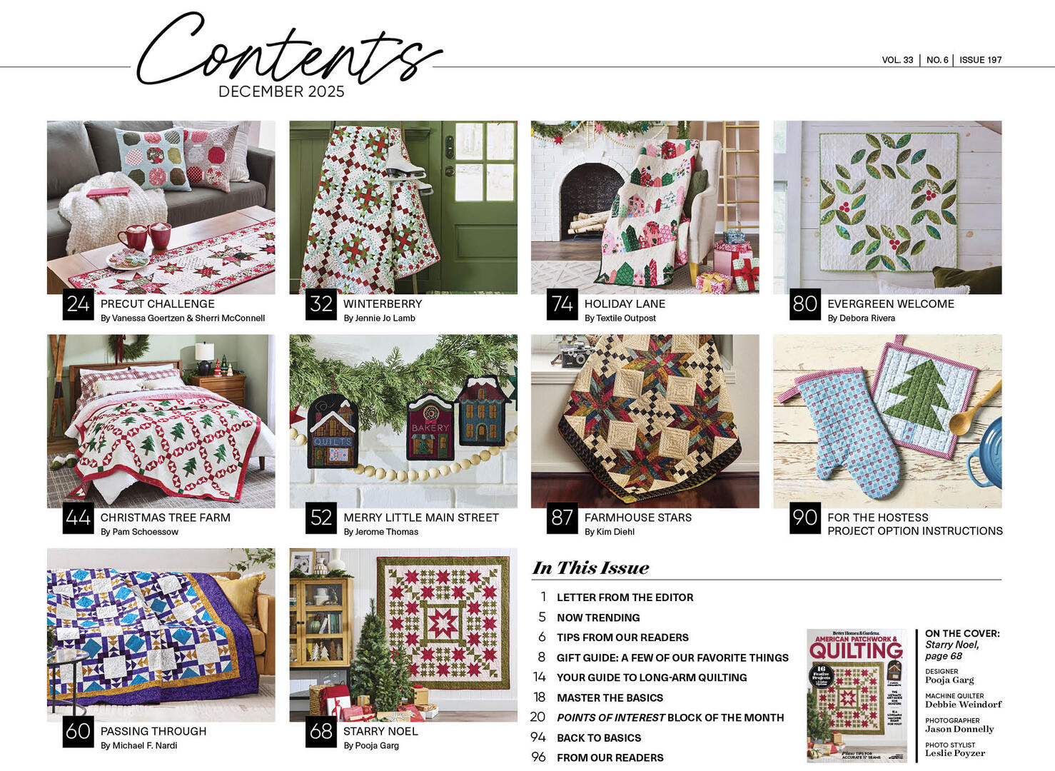 American Patchwork & Quilting's December 2025 issue brings you 16 Festive projects in 96 pages!