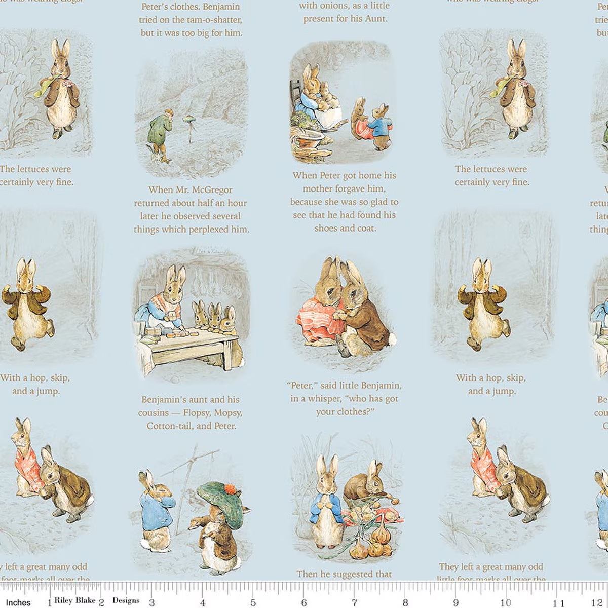 This 100% cotton print fabric is from the Peter Rabbit™ & Benjamin Bunny™ collection for Riley Blake Designs. This digitally-printed fabric features vignettes of Peter Rabbit, Benjamin Bunny, and friends. Official licensed product. BEATRIX POTTER™. © Frederick Warne & Co., 2024. All Rights Reserved.