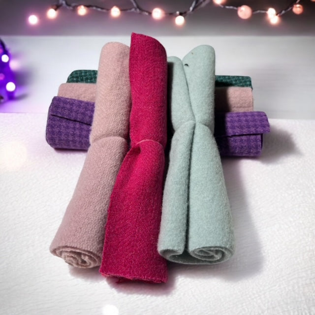 Single 8" x 13" Blue/Pink/Purple/Red Wool Rectangle Piece $6.50 $3.00 Each Number of yards (min. 1/2) -- 1/4 1/2 3/4 Qty. Add to Cart This item is currently on backorder but you can still purchase it now and we'll ship as soon as more become available. This is a single piece of 8"x13" wool. We will pick a random Blue, Pink, Purple, or Red one for you! *All Sales Final. Tweet