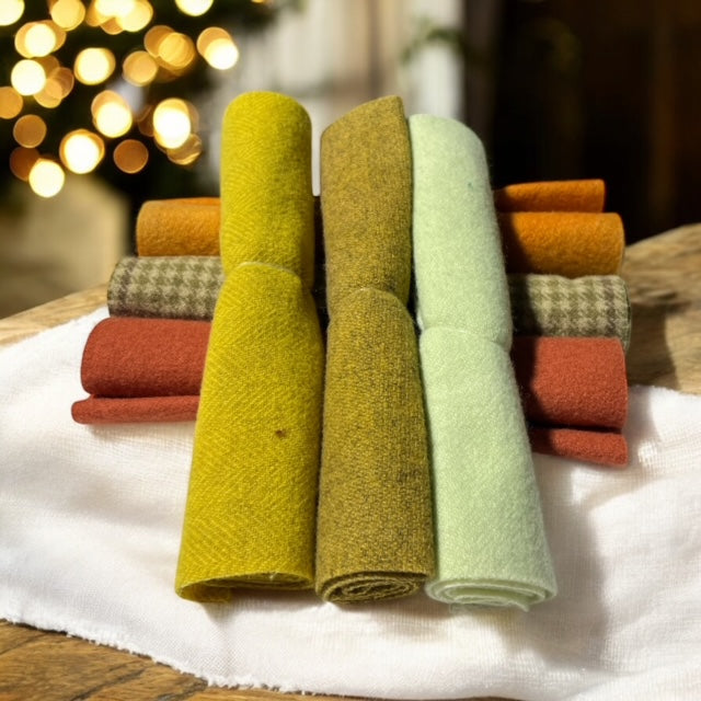 Single 8" x 13" Green/Orange/Yellow Wool Rectangle Piece $6.50 $3.00 Each Number of yards (min. 1/2) -- 1/4 1/2 3/4 Qty. Add to Cart This item is currently on backorder but you can still purchase it now and we'll ship as soon as more become available. This is a single piece of 8"x13" wool. We will pick a random Green, Orange, or Yellow one for you! *All Sales Final. Tweet