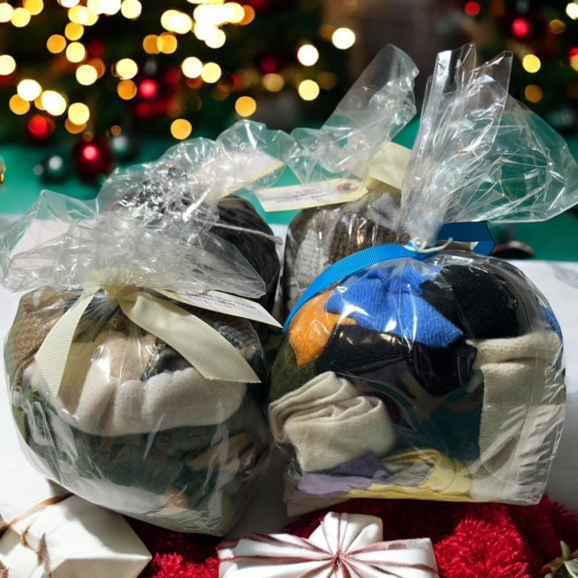 This is a pack of different sizes of wool scraps. There is a mixture of different colors in each bag. We will pick a random one for you!